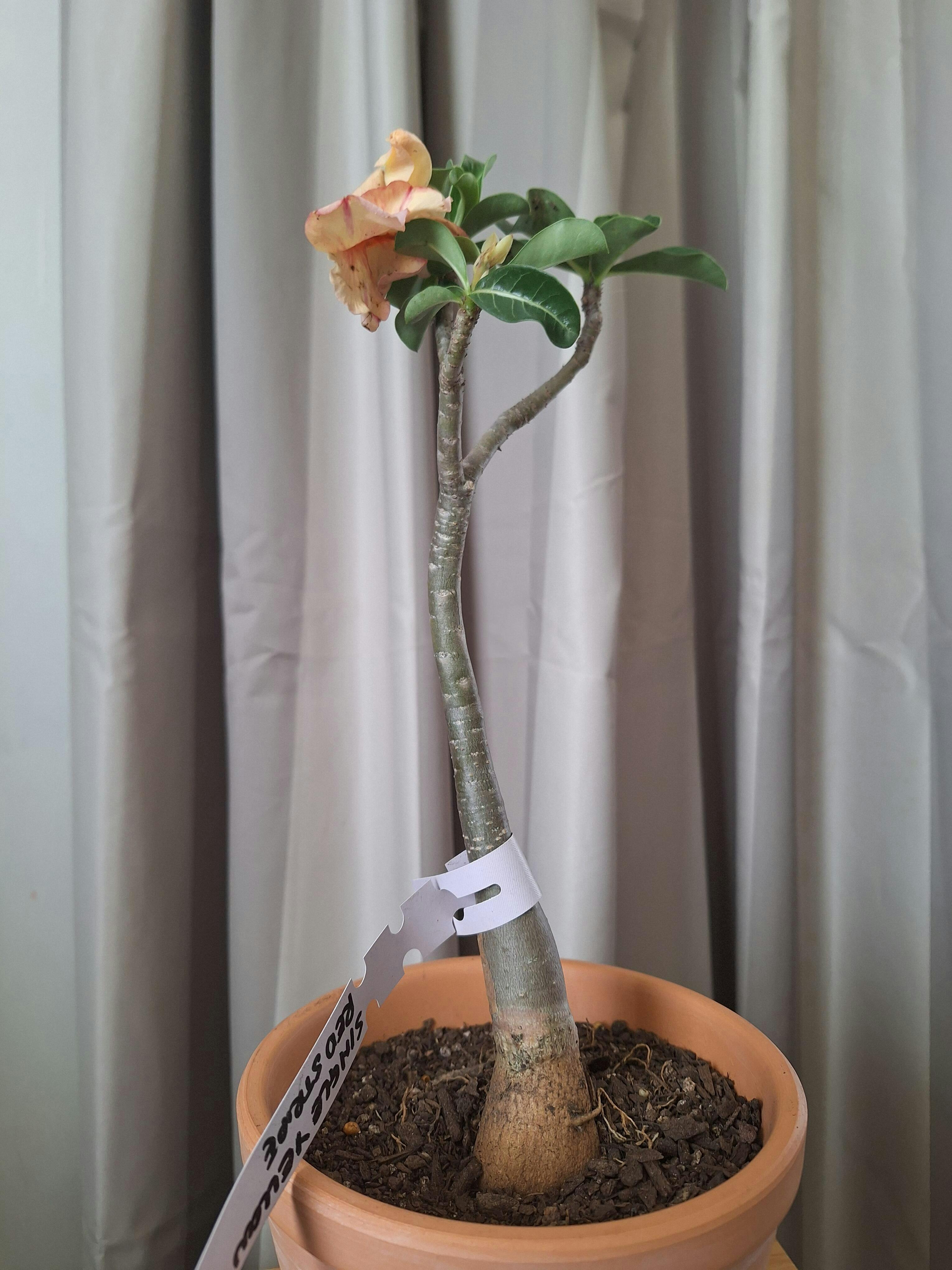 These trumpet-shaped blooms create a visual spectacle reminiscent of the vibrant desert flora.Adenium obesum, commonly known as the Desert Rose, is a captivating and enduring ornamental shrub that evokes the mystique and resilience of desert landscapes.Desert Rose is a hardy plant that thrives in hot, dry climates and is often used in xeriscaping. It prefers well-draining soil.