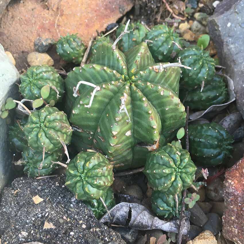 Euphorbia meloformis is a small, globular succulent with striking symmetry and architectural appeal. Its thick, ribbed, gray-green body and compact size make it a perfect choice for collectors looking for a sculptural addition to their succulent display. During the growing season, it produces tiny, inconspicuous flowers, allowing the plant’s unique form to remain the center of attention.