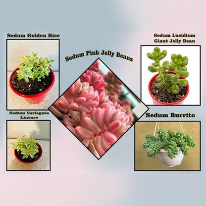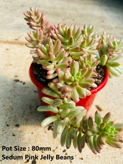Sedum Pink Jelly Beans : Sedum Pink Jelly Beans, also known as Sedum rubrotinctum 'Aurora,' is a charming and eye-catching succulent that belongs to the Crassulaceae family.It's a low-growing, trailing succulent that forms dense clusters or mats. Sedum Pink Jelly Beans is a versatile succulent that looks fantastic in rock gardens, hanging baskets, or as a ground cover.