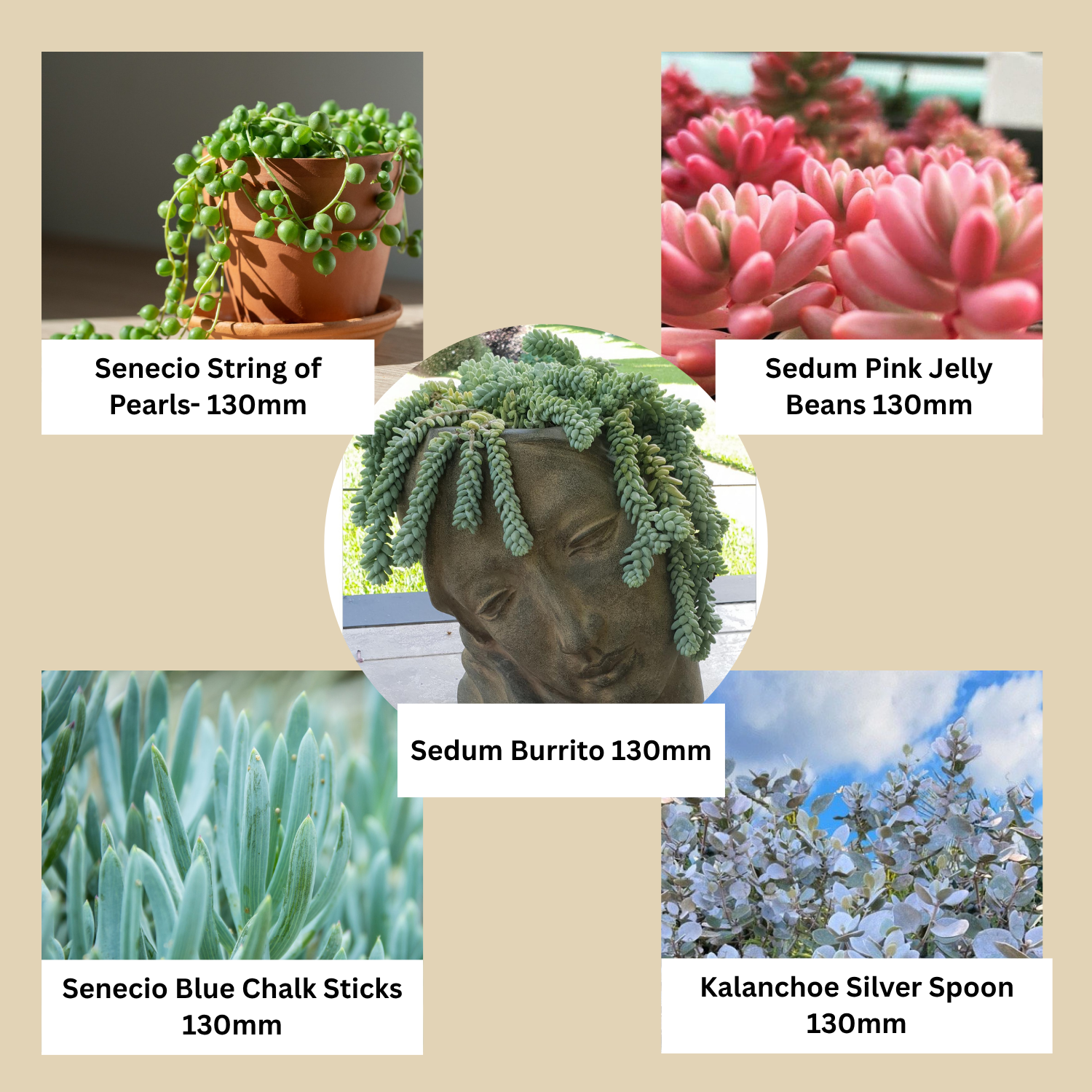 Picture is representative of what you will receive in 130mm pot Size plant (send As bare rooted), but may vary slightly because no two succulents are the same.