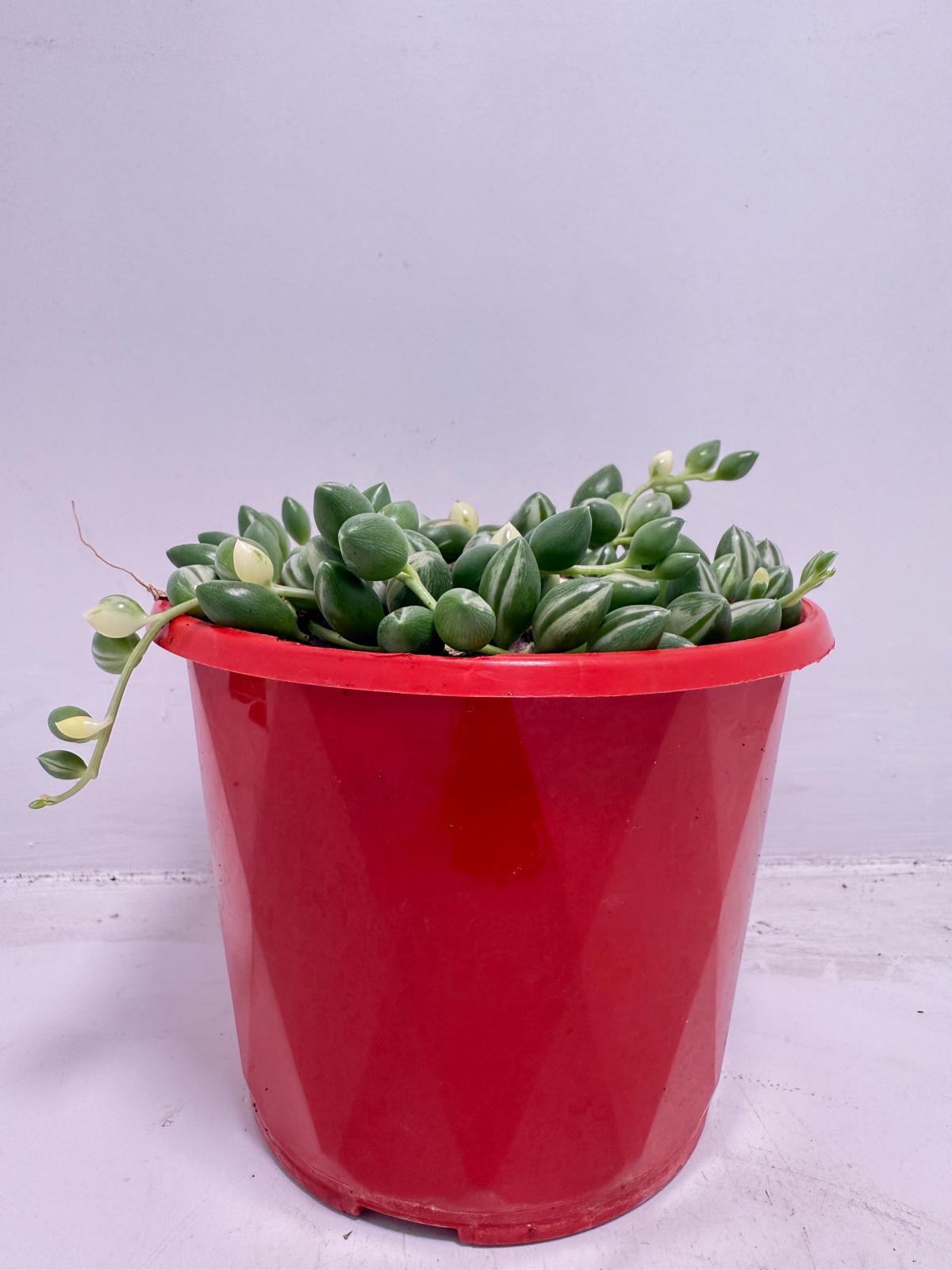 The succulent plant housed in the red pot comes in a 130mm diameter container. While the image provides a representative depiction of what you will receive, but may vary slightly because no two succulents are the same. You will be ordering a cutting.