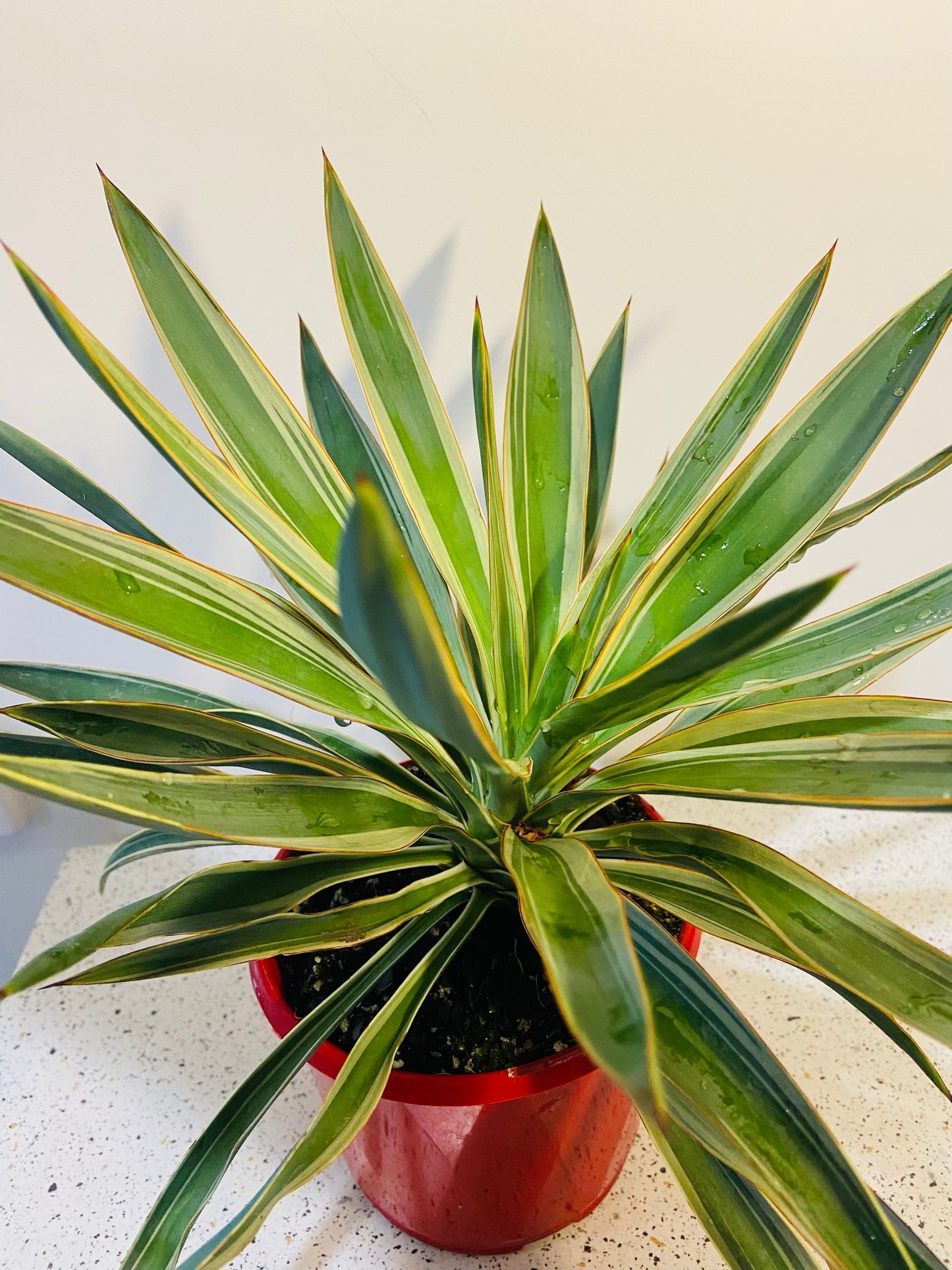 Yucca ‘Carnival’ is a bold, architectural plant known for its dramatic variegated foliage. Its sword-shaped leaves feature striking green centers with broad, creamy-yellow margins, creating a vibrant display all year round. This variety is both hardy and low-maintenance, making it an excellent choice for feature plantings, modern landscapes, or container displays.